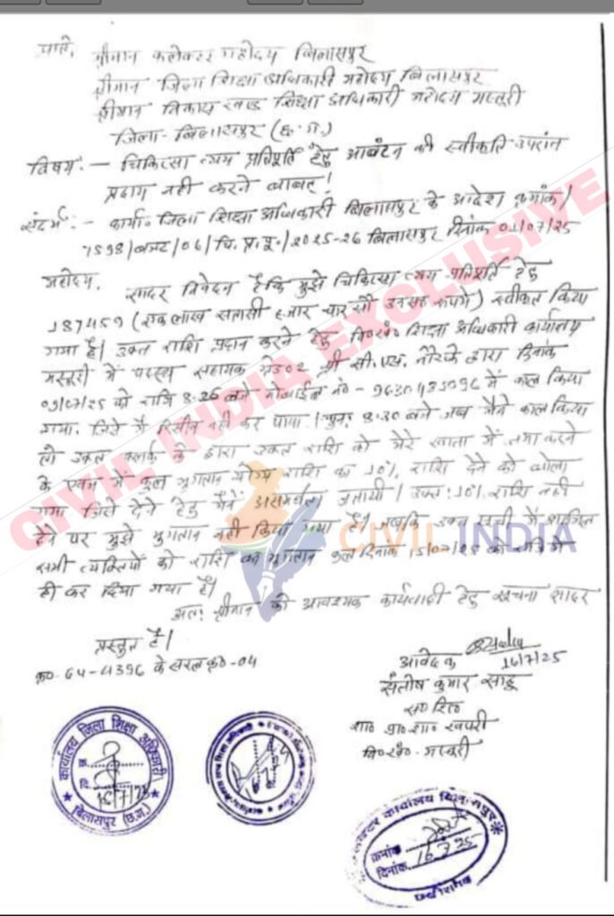 बिलासपुर। मेडिकल बिल जारी करने के एवज में मस्तूरी बीईओ कार्यालय का क्लर्क शिक्षक से रिश्वत मांग रहा है। क्लर्क और शिक्षक के बीच हुई बातचीत का आडियो अब सोशल मीडिया प्लेटफार्म पर तेजी के साथ वायरल हो रहा है। वायरल आडियो में क्लर्क बोल रहा है.. कमीशन की राशि ऊपर तक जाती है, सभी को देना पड़ता है हिस्सा। सोशल मीडिया में यह सवाल भी उछाले जा रहे हैं कि ये ऊपर वाले कौन-कौन लोग हैं, जो कमीशनखोरी का धंधा चला रहे हैं। बहरहाल आडियो वायरल होने के बाद बिलासपुर जिला शिक्षा अधिकारी कार्यालय से लेकर बीईओ कार्यालय के कामकाज को लेकर अटकलें लगाई जा रही है। विभाग की छवि खराब हो रही है सो अलग।