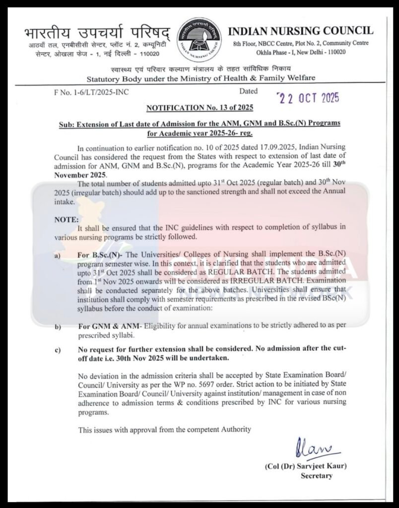 हाई कोर्ट के आदेश पर हुआ अमल: चिकित्सा शिक्षा विभाग ने बीएससी नर्सिंग की काउंसलिंग 26 अक्टूबर तक बढ़ाई